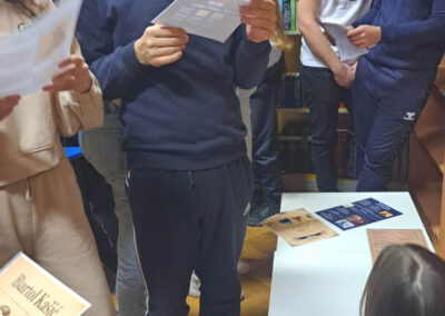 Prvo su svi zajedno pogledali kratki film „Od maloga Bartola do velikana“, koji su producirali učenici OŠ Cvjetno naselje iz Zagreba, a koji je bio prikazan na Danima Bartola Kašića u Zagrebu i Pagu, od 4. do 7. studenoga 2025. Nakon toga učenici su u skupinama izrađivali digitalne plakate, a tema je bila život i djelo Bartola Kašića. Jedna je skupina izradila i knjižicu sa zanimljivostima o Bartolu Kašiću te njegov poster. Učeničke radove izložili smo u školskoj knjižnici kako bi ih svi ostali učenici i nastavnici mogli vidjeti.