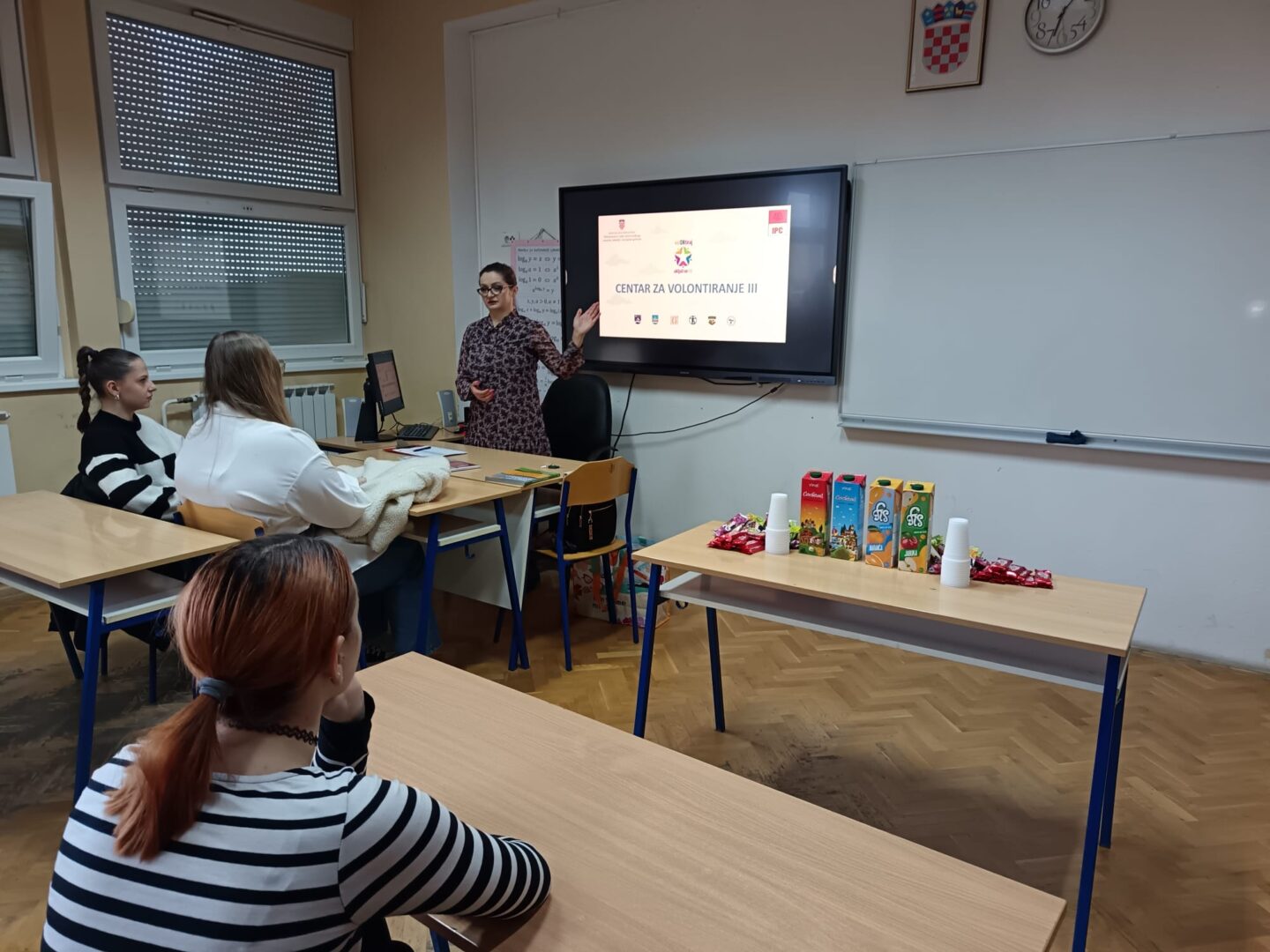 U okviru projekta Volontiram, i ove godine smo imali edukaciju za volontere. Edukaciju je u utorak, 2. prosinca 2025., provela Maja Kuzmić, djelatnica IPC-a . Na edukaciji je sudjelovalo trideset učenika naše škole. Osim u projektu Volontiram, naša škola surađuje s IPC-om i u projektu “Stop vršnjačkom nasilju”. U okviru tog projekta IPC je našoj školi donirao računalo.