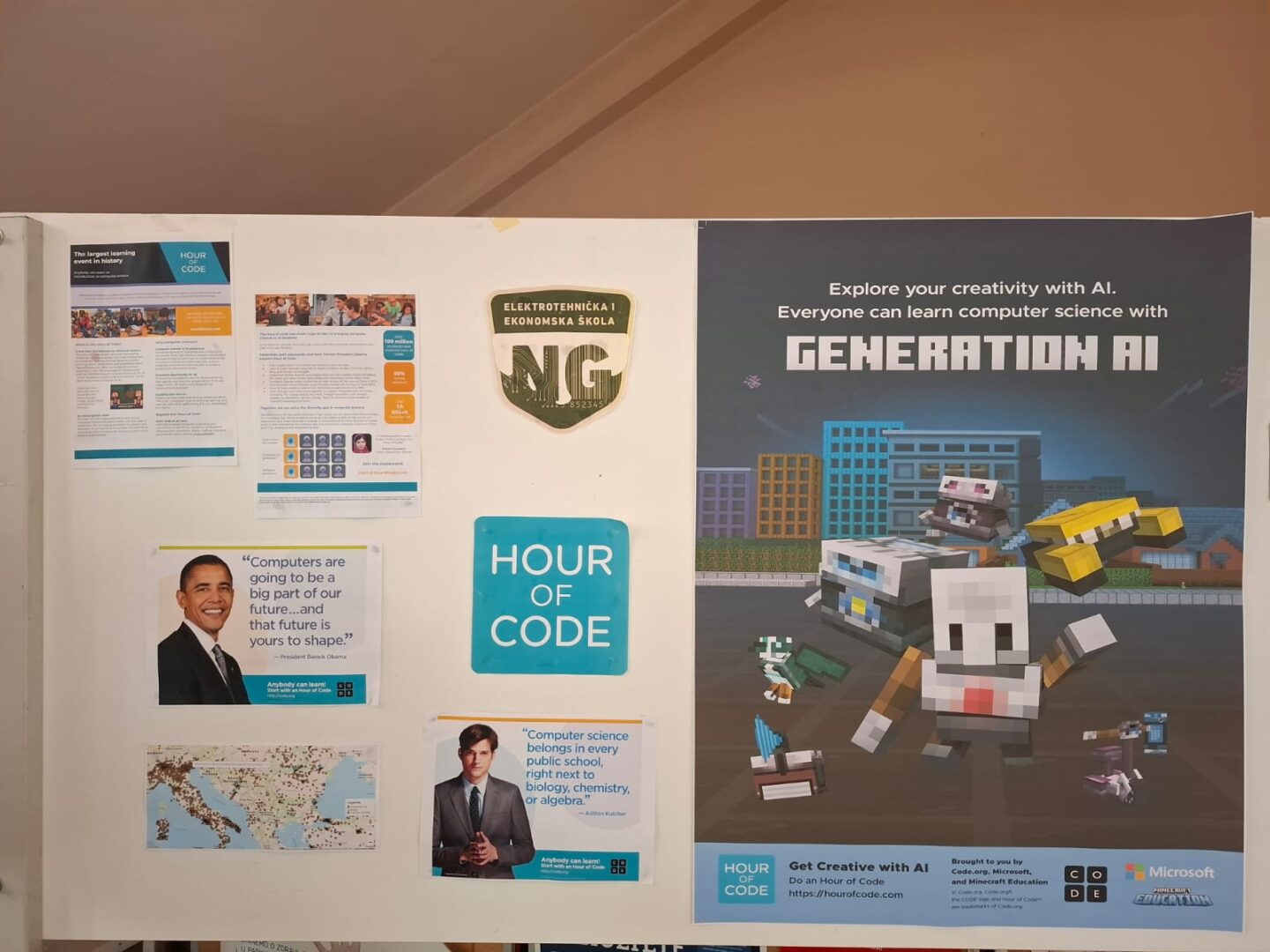 prigodni pano u hodniku škole te sudjelovali u radionicama programiranja.