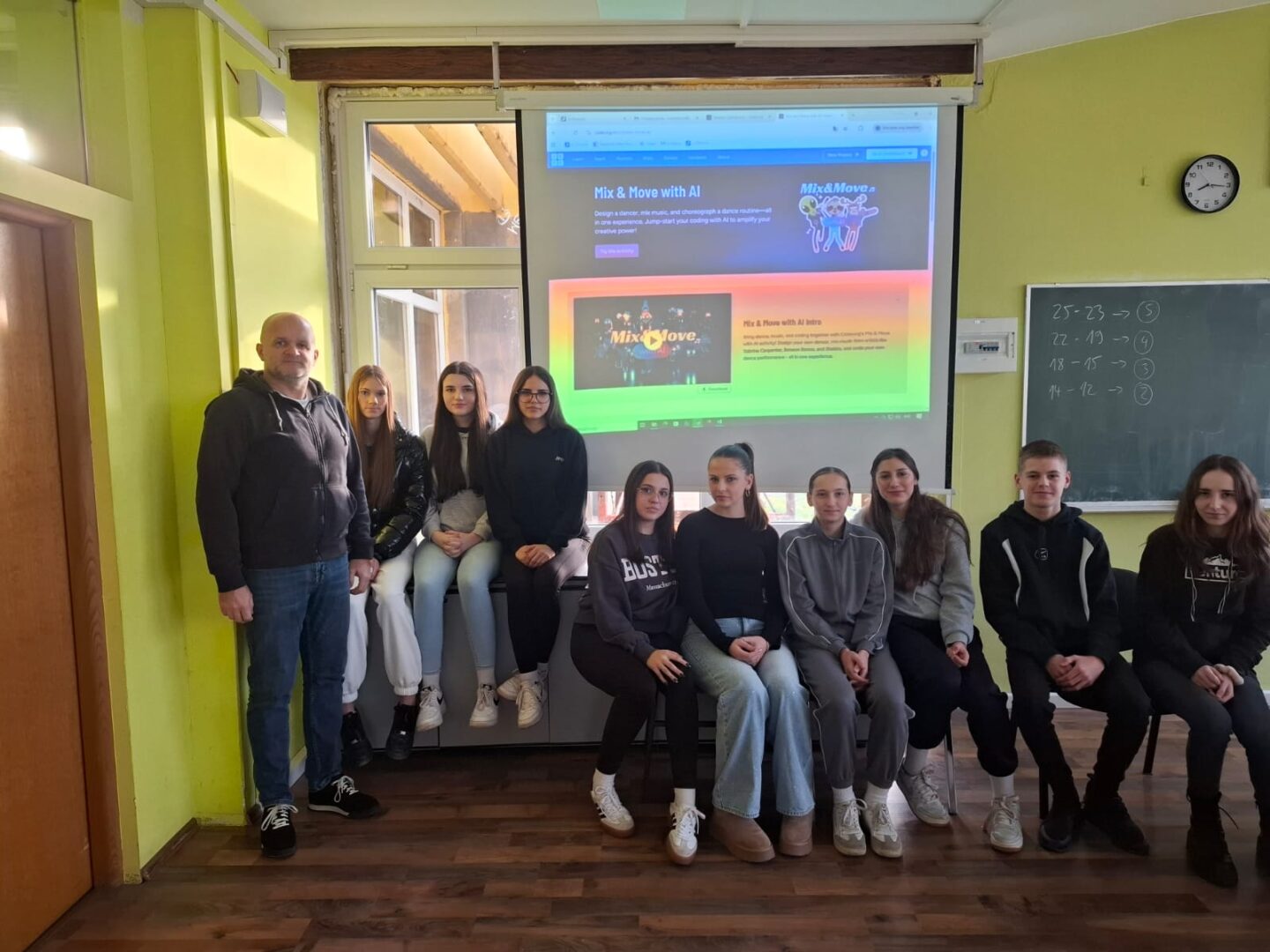 učenici zajedno sa svojim nastavnikom sudjelovali u radionicama slažući blokove koda na