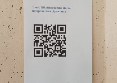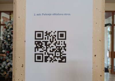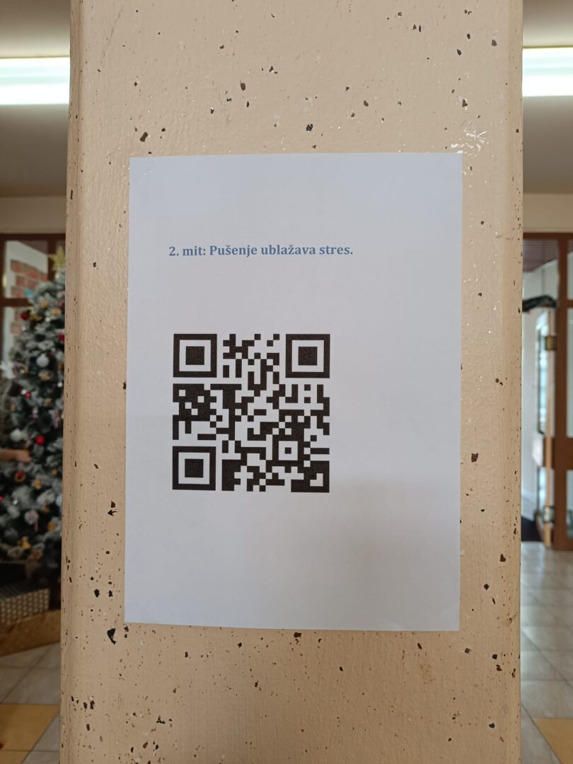 U Mjesecu borbe protiv ovisnosti u holu škole postavljen je interaktivni kviz “Mit ili činjenica?”. Učenici su pomoću qr codova pristupali informacijama i razotkrivali poznate mitove o pušenju duhanskih proizvoda te se tako educirali o štetnosti cigareta.