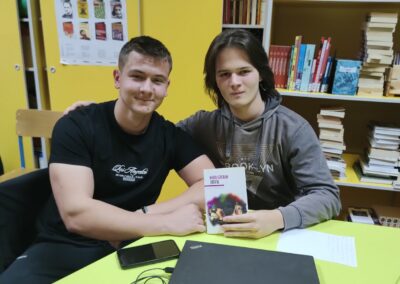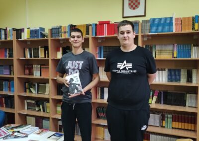 Učenici su predstavili sljedeće naslove hrvatskih autora dostupne u školskoj knjižnici: Listanje kupusa (Igor Beleš) Judita (Miro Gavran), Umri ženski (Marina Vujčić), Oblak čvoraka (Ivana Šojat), Zmajevi koji ne lete (Ivana Šojat) i Što je muškarac bez mrkova (Ante Tomić).