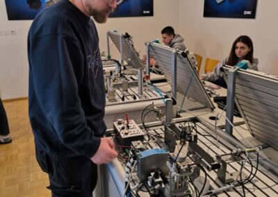Tijekom Erasmus+ mobilnosti provedene su nastavne i praktične aktivnosti Aktivnosti su obuhvaćale predavanja i praktičnu obuku učenika s naglaskom na primjenu industrijskih automatizacijskih tehnologija. Rad je uključivao korištenje didaktičke i industrijske opreme, poput elektro-pneumatskih sustava, PLC uređaja te edukacijskih platformi za učenje automatizacije i robotike. Poseban naglasak stavljen je na povezivanje teorijskih znanja s praktičnim vježbama, razvoj tehničkih kompetencija učenika te upoznavanje s realnim industrijskim scenarijima. Ove aktivnosti su doprinijele unaprjeđenju nastavnog procesa, razvoju stručnih i pedagoških kompetencija te jačanju međunarodne suradnje u području strukovnog obrazovanja.