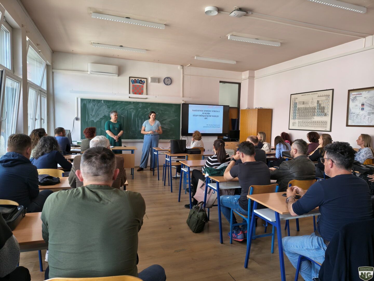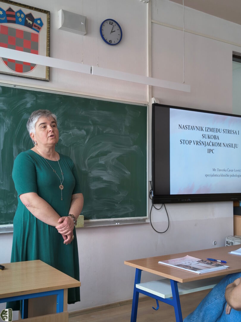 U četvrtak, 23. travnja 2026., na sjednici Nastavničkog vijeća Elektrotehničke i ekonomske škole održano je stručno predavanje pod nazivom „Nastavnik između stresa i sukoba“. Predavanje je održala specijalistica kliničke psihologije Davorka Čavar-Lovrić, u sklopu projekta „Stop vršnjačkom nasilju“, koji škola provodi u partnerstvu s Informativno-pravnim centrom.