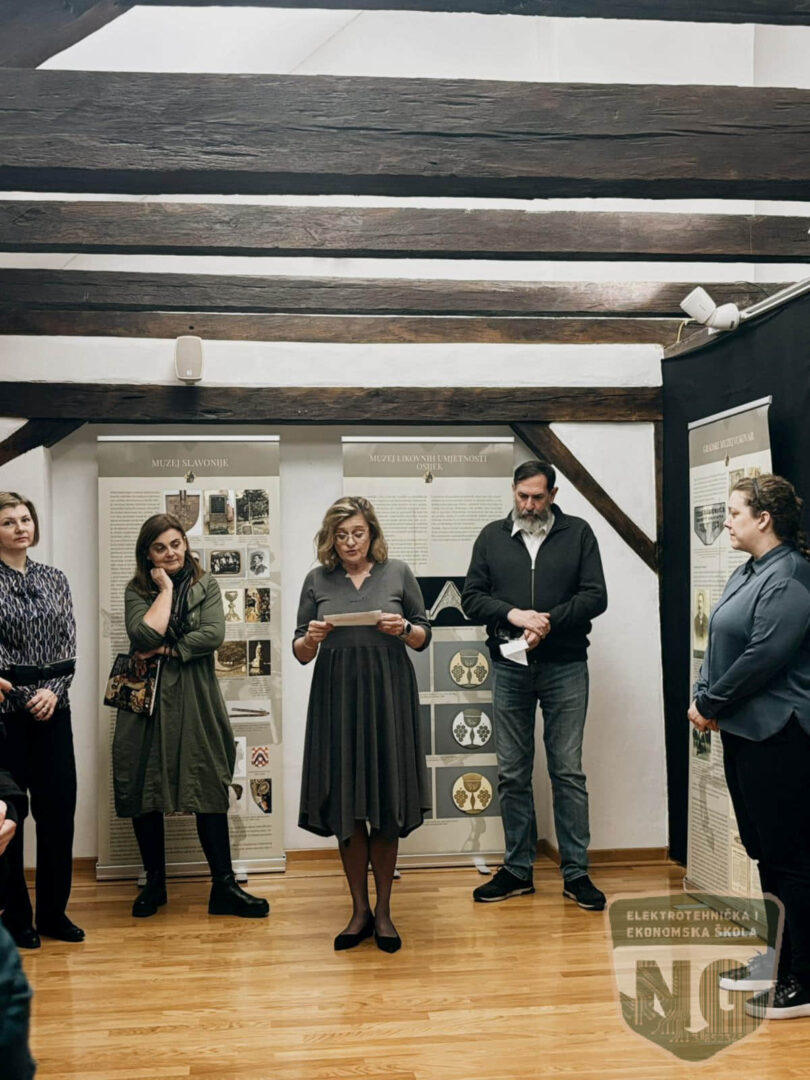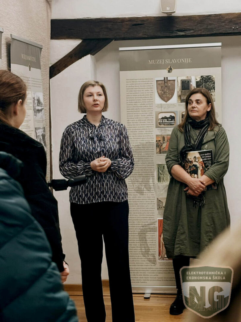 Nekoliko učenika iz 1.k, 3.k razreda te jedan učenik iz 2.g razreda sudjelovali su na otvorenju izložbe 1100 godina Hrvatskog Kraljevstva / Tragovi i odjeci milenijske proslave na istoku Hrvatske, koja je postavljena u Gradskome muzeju Nova Gradiška 24. veljače 2026. Izložba prikazuje povijest i odjeke proslave tisućite obljetnice Hrvatskoga Kraljevstva iz 1925. Gradski muzej Nova Gradiška član je Muzejske udruge Istočne Hrvatske (MUIH), koja okuplja 21 muzej i galeriju s područja Slavonije, Baranje i Srijema. Na početku je sve nazočne pozdravila ravnateljica muzeja Jelena Kovre. O izložbi su govorili Marina Vinaj i Grgur Marko Ivanković iz Muzeja Slavonija Osijek, Danijela Ljubičić Mitrović iz Muzeja Brodskog Posavlja te Ana Pavleković Žeruk, voditeljica Kulturno-povijesnog odjela Gradskoga muzeja Nova Gradiška. Ona je i sudjelovala u stvaranju spomenute izložbe; istražila je temu obilježavanja 1000. obljetnice Hrvatskoga Kraljevstva na području nadležnosti Muzeja te je bila član uredništva izložbe.