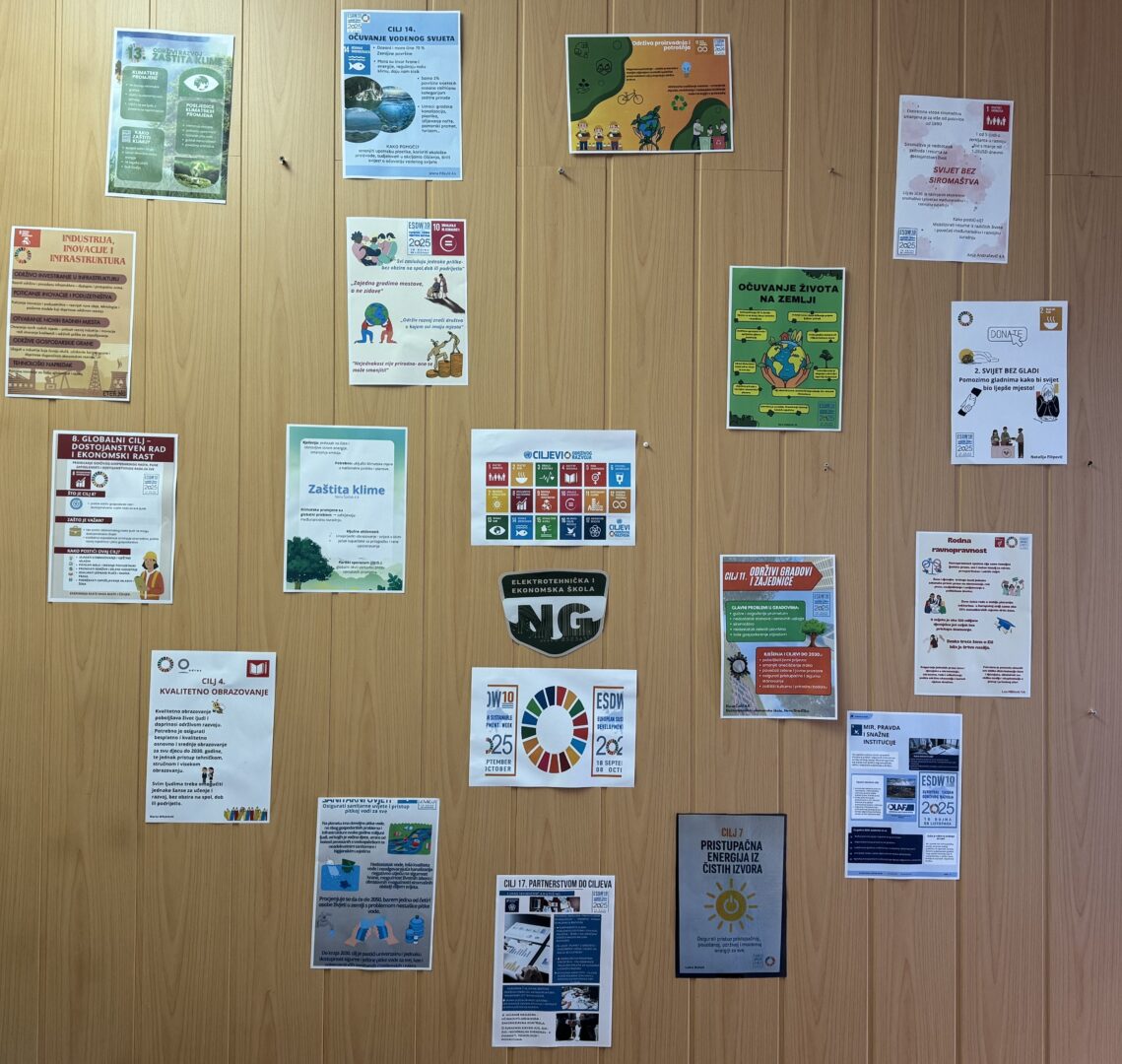 Učenici trećeg i četvrtog razreda smjer komercijalist obilježili su Europski tjedan održivog razvoja (ESDW) u razdoblju od 28. rujna do 5. listopada 2025. godine. Aktivnosti koje su obilježile tjedan su proučavanja i analiza UN Agenda 2030. i 17 ciljeva održivog razvoja. Učenici su radili u paru, koristili su web alate 2.0, a rezultati suradničke nastave izloženi su u prostorijama škole kako bi bili vidljivi ostalim učenicima i nastavnicima. Plakati prikazuju probleme i rješenja za svaki cilj.