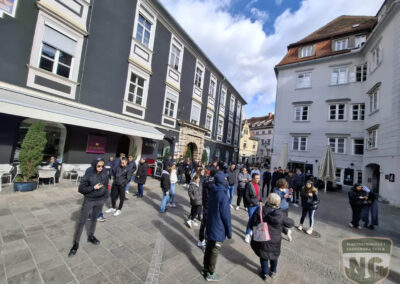Nakon toga krećemo prema Grazu, koji je drugi po veličini grad u Austriji i glavni grad savezne pokrajine Štajerske. Poznat je kao spoj povijesne baštine pod zaštitom UNESCO-a, modernog dizajna i vrhunske gastronomije. Obilazimo grad i njegove znamenitosti uz stručno vodstvo lokalnog vodiča, kao što su Schlossberg i Uhrturm, brdo u središtu grada do kojeg vodi 260 stuba ili uspinjača, Starogradska jezgra koja je pod zaštitom UNESCO-a, poznata po renesansnim i baroknim građevinama, Murinsel, umjetni plutajući otok u obliku školjke na rijeci Muri i niz drugih zanimljivosti. Zatim su učenici dobili slobodno vrijeme za aktivnosti po vlastitom izboru.