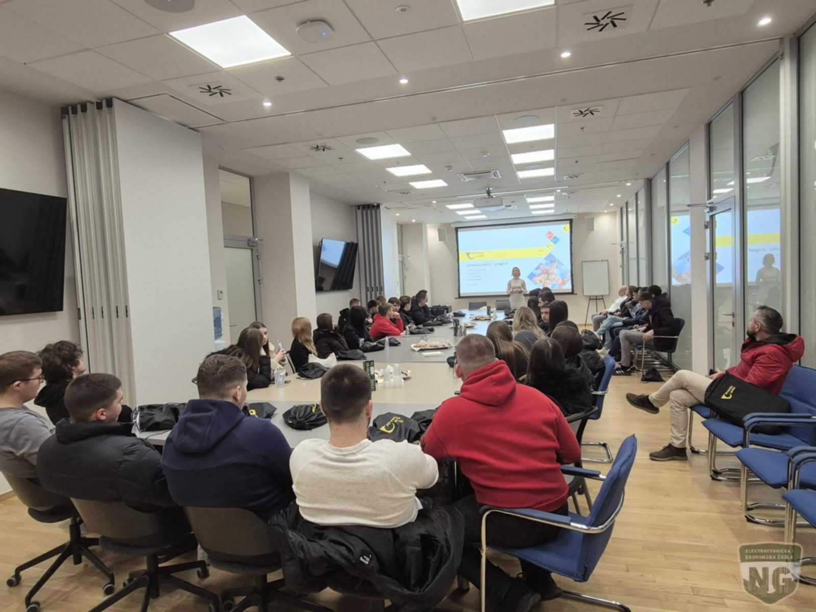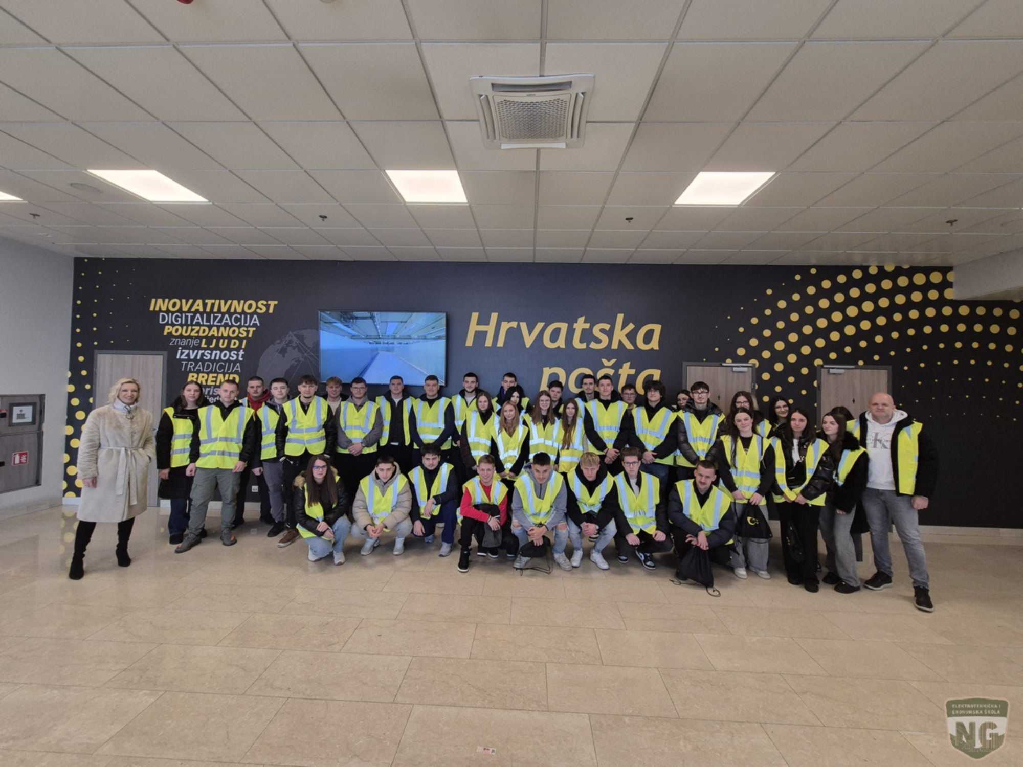 Dana 29. siječnja 2026. godine učenici završnih razreda Elektrotehničke i ekonomske škole Nova Gradiška u pratnji svojih nastavnika posjetili su Nacionalni sortirni centar Hrvatske pošte u Velikoj Gorici gdje su učenici uz stručno vodstvo upoznati sa načinom, tehnikama i tehnologijama suvremenog poslovanja. Gradnja novog sortirnog centra počela je polaganjem kamena temeljca u svibnju 2017., a otvorenje je uslijedilo u rujnu 2019. Sada se na površini od 70 200 m² nalazi veliki kompleks od 38 200 m², koji sadrži sortirnicu, visoko regalno skladište, poštansku i paketnu logistiku, IT i podatkovni centar kao i podršku poslovanju. Ovaj nacionalni skladišno-sortirni centar jedan je od najsuvremenijih logističkih centara u ovom dijelu Europe te surađuje s brojnim domaćim i globalnim partnerima u e-trgovini. Kako bi osigurali adekvatne uvjete u prostorima obrade i pohrane paketa te produktivno radno okruženje za svojih 1 700 zaposlenika. Upravo je u visokom regalnom skladištu, koje je smješteno pokraj sortirnice, dovršena instalacija AutoStorea, novog sustava Hrvatske pošte za automatsko komisioniranje robe. Riječ je o inovativnom sustavu pametnih robota koji bez napora klize po aluminijskoj mreži te spremaju ili dohvaćaju spremnike s robom iz gusto zbijenog vertikalnog skladišnog prostora. Trenutačni kapaciteti stroja iznose 1500 paleta robe koja je spremljena na površini od petstotinjak četvornih metara. Stroj s pomoću umjetne inteligencije optimizira smještaj artikala, a na osnovi povijesnih podataka uči i predviđa budući smještaj artikala kako bi smanjio vrijeme potrebno da se pojedini artikl pronađe, dohvati i spusti na radnu stanicu radniku za slaganje robe. Zahvaljujući stroju, radnici više ne moraju obilaziti skladište i ručno prikupljati naručenu robu, a uz stroj je moguće odraditi i do 30 posto više dnevnih naloga uz jednak angažman radnika. Brojka ne začuđuje, pogotovo ako imate na umu da 17 robota, koliko ih stroj ima, putuje brzinom od četiri do pet metara u sekundi.Iz Hrvatske pošte naglašavaju da automatizacija poslovanja i nove tehnologije ne zamjenjuju njihove radnike, nego im pomažu da bolje, efikasnije i jednostavnije obave svoje zadatke. Posebno se zahvaljujemo gospođi Jeleni Pavičić na velikom angažmanu i trudu oko našeg dolaska kako bi učenici sve vidjeli i doživjeli, a stvarno smo se osječali dobrodošli i srdačno primljeni.Zatim smo se uputili u Arena Centar gdje smo imali projekciju filma F1 u 4DX dvorani što je bilo posebno iskustvo i doživljaj za sve učenike.Nakon zanimljivog i ispunjenog dana slijedio je povratak u Novu Gradišku u večernjim satima uz ugodnu vožnju autobusom. Tekst i fotografije : Marko Brčić, mag.inf.
