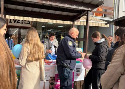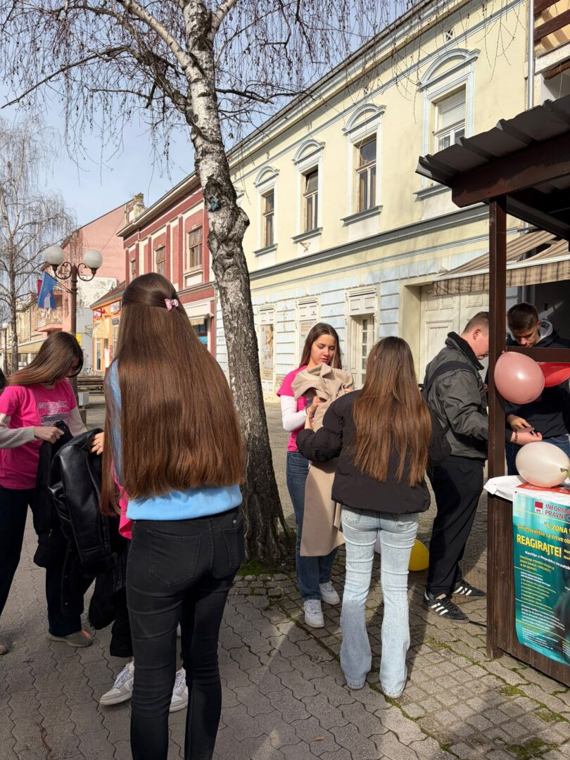 Učenici Elektrotehničke i ekonomske škole u pratnji pedagoginje Mire Linjaković sudjelovali su u četvrtak, 19. veljače 2026., u volonterskoj akciji ‘Stop vršnjačkom nasilju’ koja se održavala u centru Nove Gradiške. Volontersku akciju organizirali su IPC i policija.